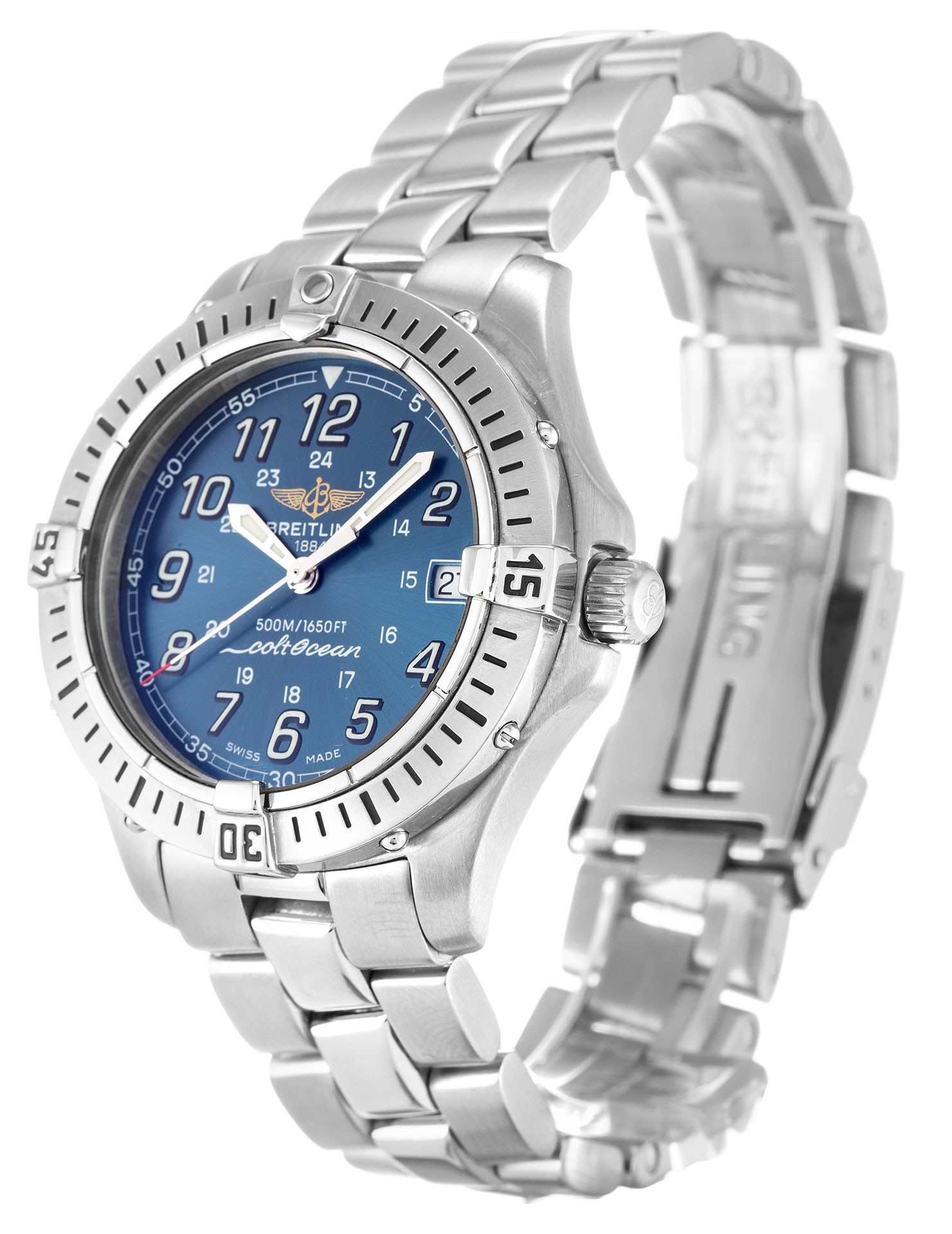 Tamaño perfecto, me encantó el diseño azul. Muy buena compra, estoy muy satisfecho con el Breitling Colt A64350.